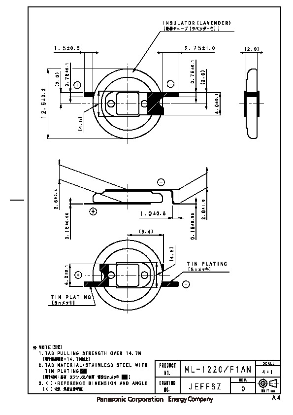 Аккумулятор литиевый Panasonic ML1220/F1AN (горизонтальный)