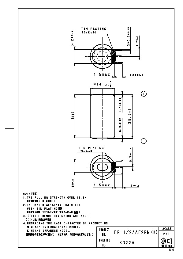 Батарейка литиевая Panasonic BR-1/2AAE2PN